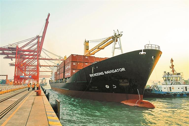 深圳新闻网2024年1月3日讯(深圳商报记者 陈发清 文/图)2024年1月1日,新年第一天,大铲湾船埠迎来一条全新的亚洲区内航路SXT厚爱挂靠母子动漫,进一步加强船埠的亚洲区域航路收罗。此航路由金星汽船有限公司(金星汽船)运营,每逢周日挂靠大铲湾船埠。